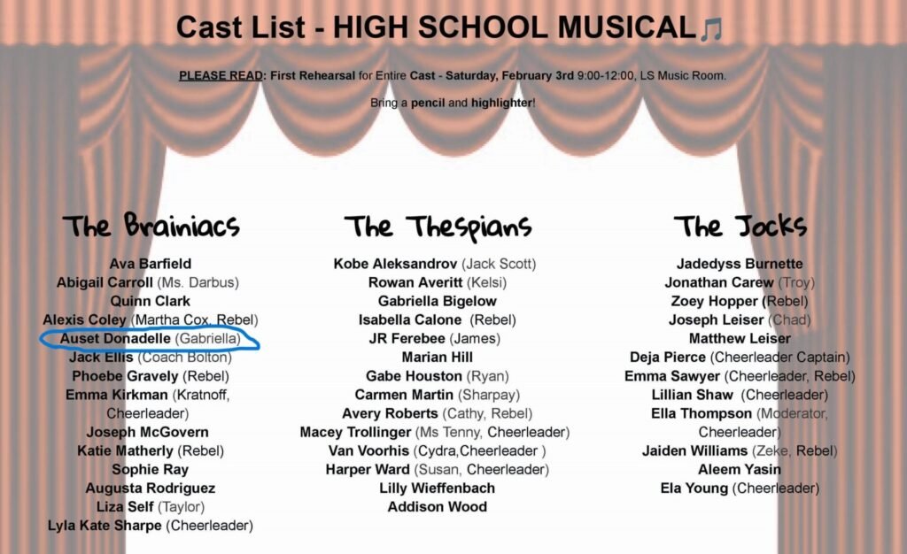 I <accidentally> got the lead role in High School Musical, the Spring Musical for The Burlington School!