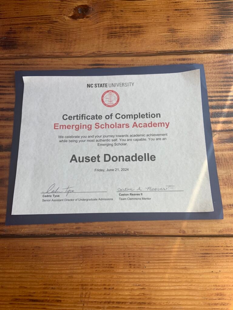 - Certificate of Completion – Emerging Scholars Academy – North Carolina State University